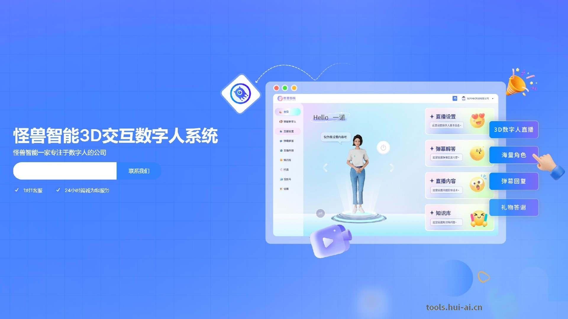 通过怪兽数字人平台可进行个性化多平台直播,支持7*24小时日不落模式,定制主播形象,实时互动。